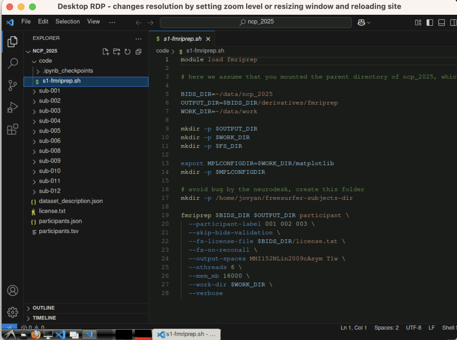In the Neurodesk container, you can either edit the bash file (preferred) or run it directly with the command line.