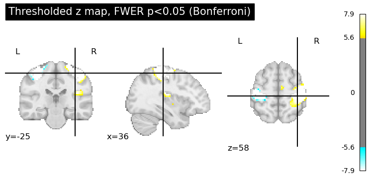 title="Thresholded z map, FWER p<0.05 (Bonferroni)")