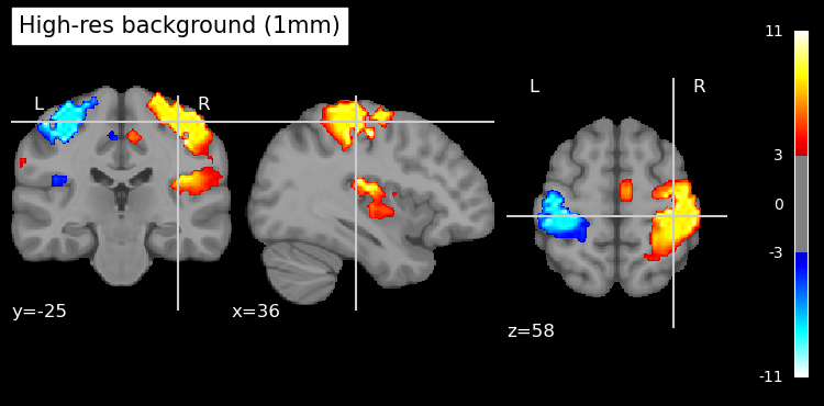 cut_coords=cut_coords, title="High-res background (1mm)")